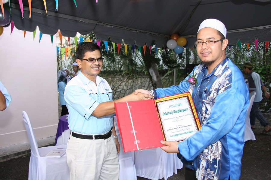A welfare project was organised to offer long term assistance and Akademi Tahfiz Al-Hidayah (ATAH), Kuala Lumpur was shortlisted as the recipient. Prokhas was able to raise fund amounting to RM20,000 with the assistance of other corporate sponsors. The fund served as financial assistance to ATAH’s financial overhead and daily expenses. In addition to this, mattresses, cupboards, study tables, computers and a van were contributed to further enhance the living standards of ATAH’s students. In co-operation with Bank Simpanan Nasional (BSN), the students also received a RM100 savings account. A gotong-royong was also held at the orphanage centre where the staff participated in various activities to strengthen the bonds with ATAH’s students.